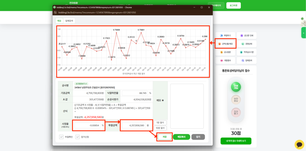| 4️⃣내역을 저장하고, 해당 금액으로 최종 투찰을 완료합니다. |