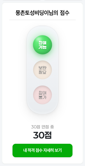 단독으로 ‘참여 가능’한지 혹은 점수 ‘보완 필요’ 상태인지 즉시 진단해 줍니다.