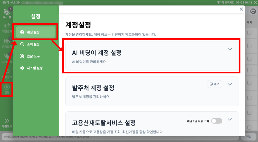 순서 : 다운로드 → AI 비딩이 계정 입력 →발주처 계정 연동
